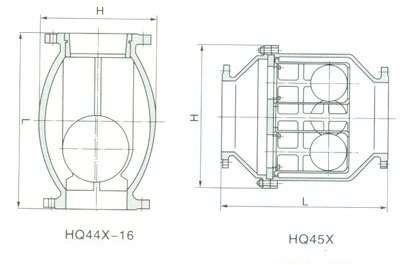 HQ44X微阻球形止回阀/ HQ45X微阻球形止回阀采用橡胶包皮球为阀瓣,在介质的作用T可在阀体内的滑道上滚动从而打开或关闭阀门。流量大流阻损失小密封性能好消声关闭可减小水击波。水平或垂自安装均可。可用于冷水、热水、工业及生活污水等管网的水泵出口防止介质倒流。